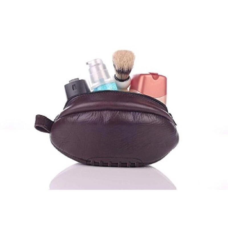 Trousse De Toilette Ballon de Rugby – Marron Vintage – Cuir De Vachette – Cousu Main.