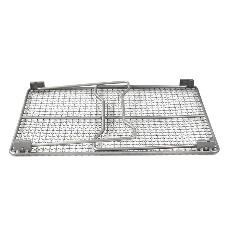 Grille pliante en titane légère, compacte et robuste avec des pieds en acier inoxydable amovibles. En décrochant les pieds, la grille peut également être transformée en une simple grille légère.